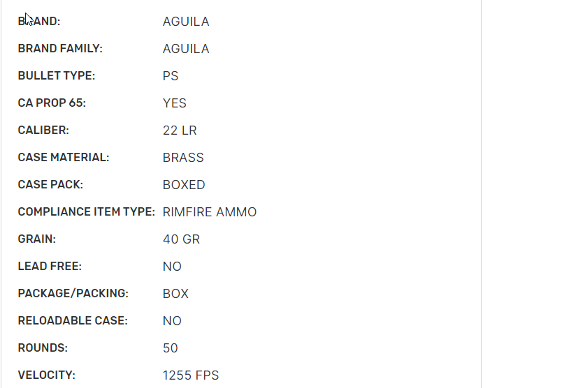 Aguila AU1B220328 Super Extra .22 Long Rifle Ammo, 40G 50Bx