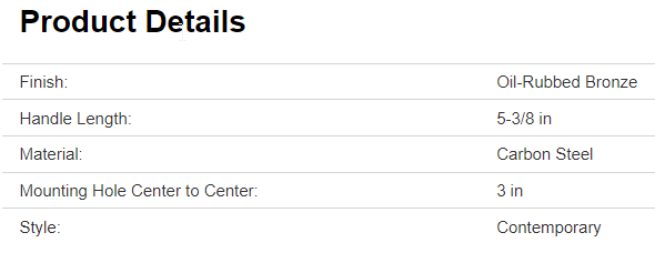 Amerock Cabinet Pull, Style: Contemporary, 5-3/8 in L Handle, Mounting Hole Center to Center: 3 in, Carbon Steel, Oil-Rubbed Bronze