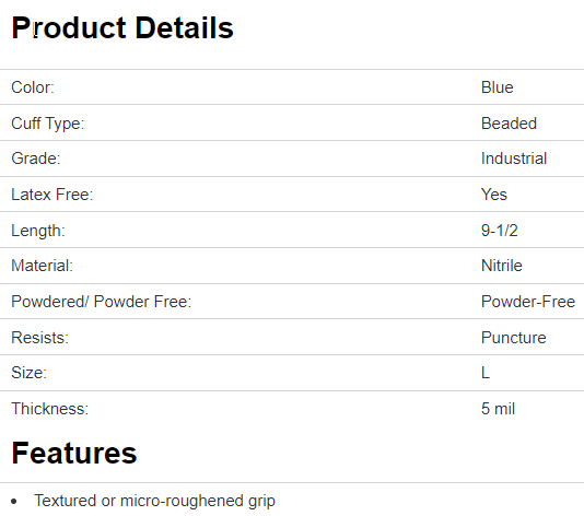 AMMEX® Gloveworks® blue nitrile powder-free industrial gloves won't let you down. This premium, industrial-grade nitrile glove is an awesome combination of strength, comfort and dexterity. More than 50% thicker than standard nitrile gloves, it is durable and offers three times the puncture resistance of latex. AMMEX® Gloveworks® blue nitrile powder-free industrial gloves are 5 mil thick in the palm with 6 mil fingertips, so they're made for working with tools and machinery. Barrier protection is excellent against a long list of common and specialty chemicals. The grip is solid thanks to a micro-roughened surface and textured fingertips, you're always in control. Nitrile is nearly as elastic as latex, which means they conform to your hand for a terrific fit. Their polymer coating makes them easy to don and doff, because they're powder-free there's no residue to mess up a perfect finish. These gloves get the job done in automotive, industrial, janitorial, food service, sanitation and safety uses. They're made from component materials that comply with FDA regulations for food contact, which makes them perfect for food processing applications. They have countless uses around the house too, from cleaning to repairs to painting.