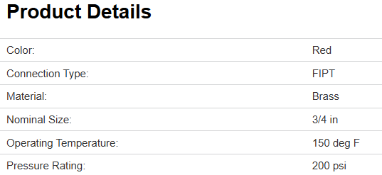 Anderson Metals Pipe Tee, Nominal Size: 3/4 in, FIPT Connection, 200 psi, Operating Temperature: 150 deg F, Brass, Red