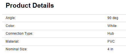 Canplas Sanitary Pipe Elbow, Nominal Size: 4 in, Hub Connection, Angle: 90 deg, PVC, White