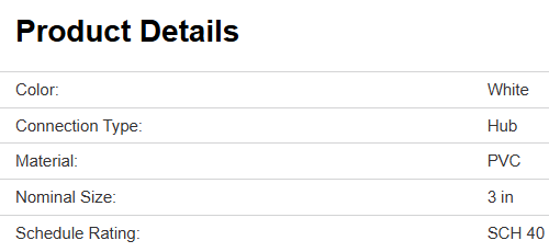 IPEX Pipe Wye, Nominal Size: 3 in, Hub Connection, Schedule Rating: SCH 40, PVC, White