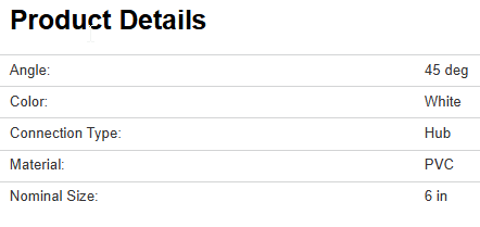 CANPLAS 414186BC PVC S&D Ell, 6" 45Deg