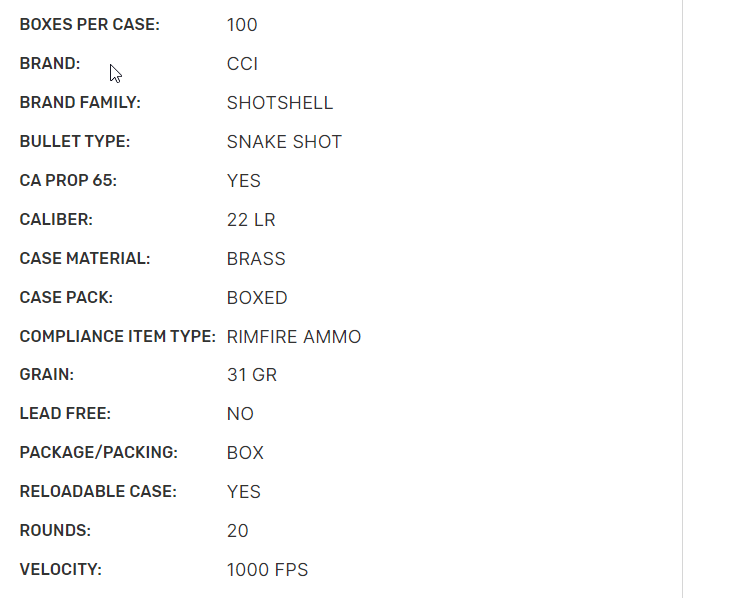 CCI Rimfire 22LR Birdshot Ammo, #12 Shot, 1000FPS, 20Ct