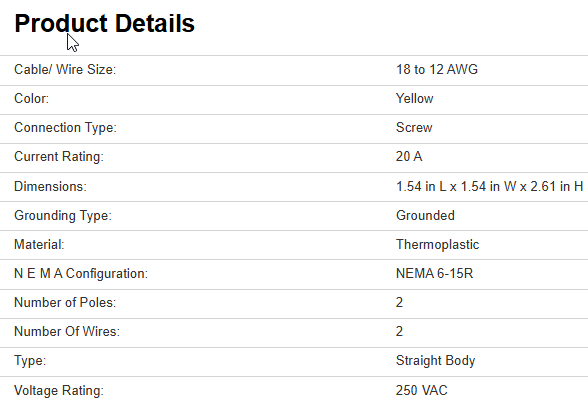 Commercial-grade, thermoplastic vinyl connectors feature solid brass plug blades are firmly embedded in body. Terminal screw clamps are designed to contain wire and prevent binding. Terminal screws backed out ready for wiring. Terminals in individual chambers to positively insulate conductors. Vinyl angle plugs have eight possible positions for maximum convenience. Combination slot/Phillips head mounting and terminal screws ease installation with power screwdrivers.