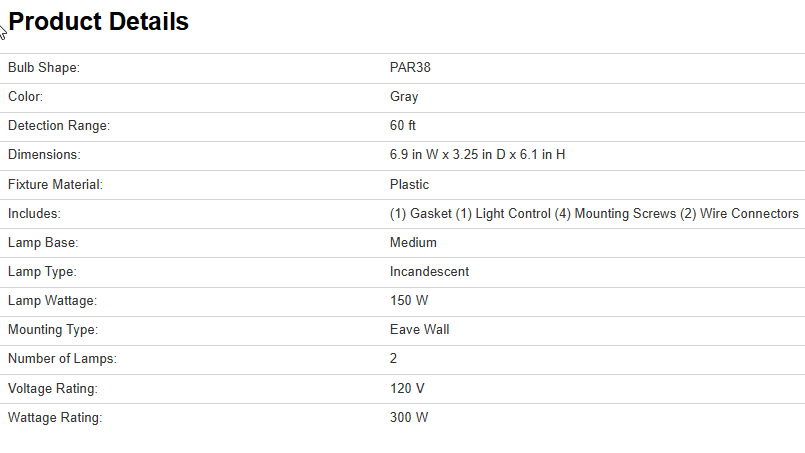 Test auto and manual modes, adjustable time delay, (10,5,1 minutes). Manual override at the light switch. Includes protective rubber gaskets for lampholders and round cover plate that adapts to existing electrical boxes. Adjustable infrared sensor range of up to 50 feet. Flood lights not included. Patented ScanGuard lens with protective hood to shield infrared lens from sun, rain and snow. Energy saving photocell. Adjustable floodlight fixtures. 110 degree detection zone. UL Listed for use in wet locations.