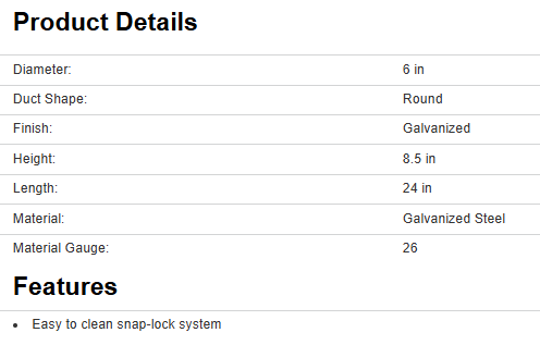 Imperial GV0380 Galv 26Ga Stove Pipe, 6"X24"