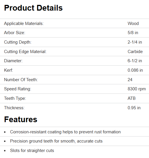 Corrosion resistant coating helps prevent rusting. Precision ground teeth for smooth, accurate cuts; slots for straighter cuts.