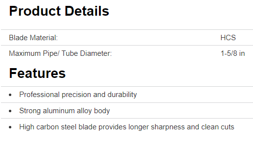 Keeney pipe cutters are made to cut through a variety of material. These tools are made for maximum efficiency to get the job done quickly and done right the first time. Constructed out of die-cast aluminum alloy body and sharp carbon steel blades. The pipe cutters produce straight, clean, burr-free cuts.