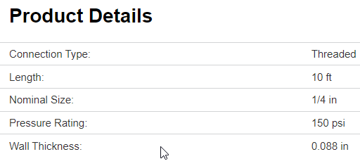 Standard weight, coupled and threaded for steam and water working pressure up to 150 lb