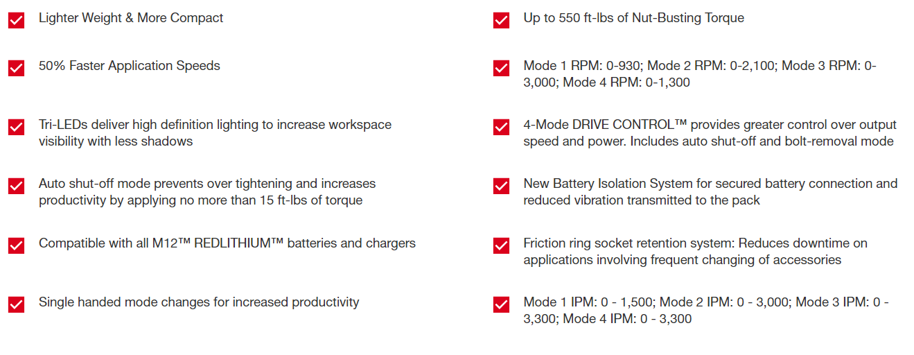 Our new 3/8” Stubby Impact Wrench delivers the Most Power, Is Lighter Weight & More Compact while delivering 50% Faster Application speeds. Leveraging POWERSTATE™ Brushless Motor, The Stubby Delivers 0-3,000 RPM with up to 550 ft-lbs of Nut Busting Torque, allowing the removal of the most corroded and stubborn applications. Our solution delivers on performance and size, at only 2.2 lbs bare tool. Users will experience less fatigue throughout their work week while fitting into tight spaces and allowing access where larger impacts can't fit without using additional accessories or disassembling components to reach the desired fastener. Equipped with Tri LED work lights to illuminate your work area without the frustration of shadows. 4-Mode DRIVE CONTROL™ for greater precision and customization to your desired power output, including AUTO SHUT-OFF™ that applies no more than 15 ft-lbs of torque for hand-tight applications that prevent overtightening when in forward. In reverse, bolt removal mode will slow down the RPM once the bolt is free to prevent bolts from flying around your work area. To change the modes, it is a single-handed operation. By shifting the forward-reverse shuttle into neutral and double-tapping the trigger, you will be able to change modes effortlessly.