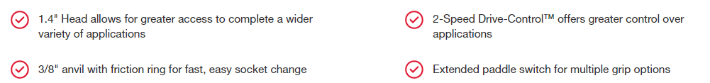 The M18™ Cordless 2-Speed 3/8" Right Angle Impact Wrench offers users maximum access, and ultimate speed & control over their hard to reach fastening applications. Its 1.7" head profile fits where pistol-grip impact tools cannot, and its extended paddle switch allows trademen to operate their tool from multiple grip points. This is the only tool in its class to offer multiple speed/torque modes through proprietary 2-Mode Drive Control™. REDLINK™ Intelligence provides optimized performance and overload protection using total system communication between tool, battery and charger. The M18™ Cordless 2-Speed 3/8" Right Angle Impact Wrench features an LED Light to illuminate work surfaces.