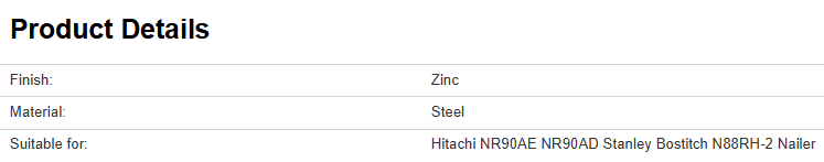 Spring-loaded and retractable. Solid steel with durable zinc plating. Keeps tools close by. For use with NR90AE, NR90AF, NR90AD Hitachi, N88RH-2 Stanley Bostitch.