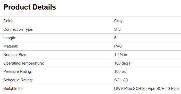 Smith-Cooper 8122 Pipe Union, Nominal Size: 1-1/4 in, Slip Connection, 100 psi, Operating Temperature: 180 deg F, Schedule Rating: SCH 80, PVC, Gray, 5 in L, Suitable for: DWV Pipe, SCH 80 Pipe, SCH 40 Pipe