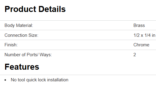 Featuring solid brass chrome-plated quick lock valves with simple push fit application that connects to copper, CPVC or PEX.