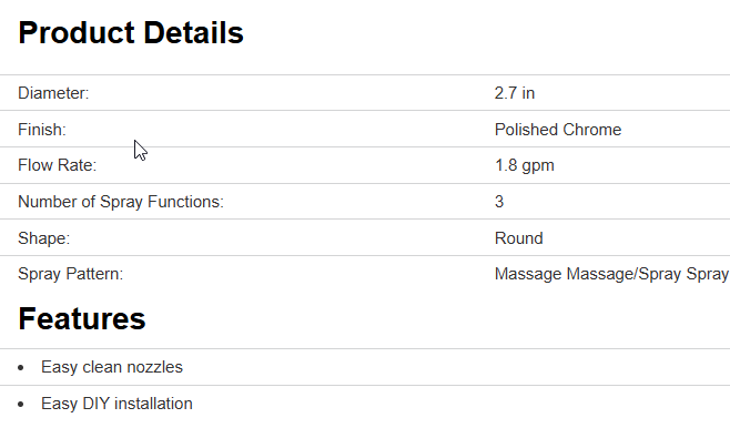 Plumb Pak Shower Head, Round, 1.8 gpm, Number of Spray Functions: 3, Spray Pattern: Massage, Massage/Spray, Spray, Polished Chrome, 2.7 in Dia