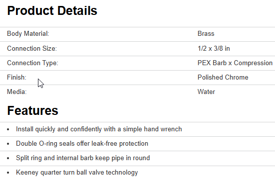 Keeney is excited to announce our no crimp PEX valves. No crimp PEX valve connections can be completed with the use of simple hand tools making installation identical to common compression connections for other pipe materials. These valves are quick and easy to install by simply tightening the nut on to the valve, causing the sleeve to compress around the pipe while the internal barb and double O-ring seal produces a leak free connection. They also feature Keeney's quarter turn ball valve technology that is known and trusted for it's quality and durability.