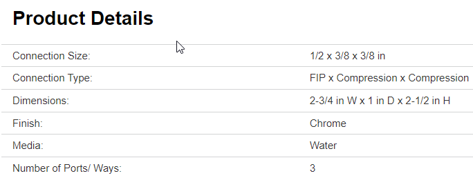PlumbPak PP2901VLF Angled 3-Way Valve, 1/2MPTX3/8CX3/8C