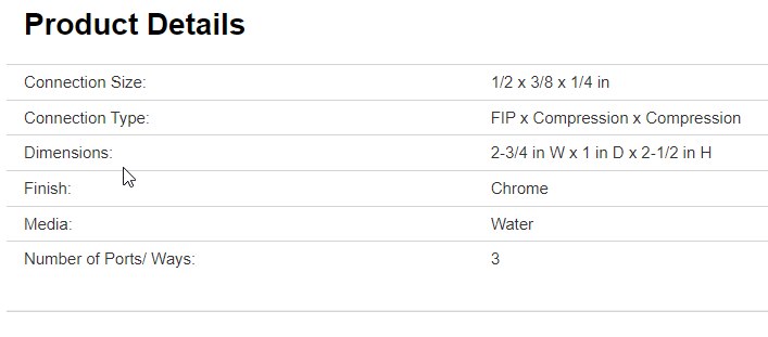 Plumb Pak Stop Valve, 1/2 x 3/8 x 1/4 in Connection, FIP x Compression x Compression Connection, Number of Ports/Ways: 3, Media: Water, Chrome, Dimensions: 2-3/4 in W x 1 in D x 2-1/2 in H
