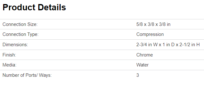 PlumbPak PP2903VLF 3-Way Shut Off Valve, 5/8CX3/8CX3/8C