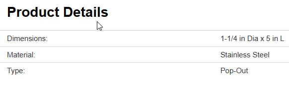 1-1/4 in x 5 in. Stainless steel rim.