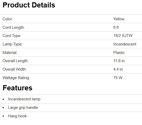 The PowerZone portable work light offers long lasting and dependable incandescent light. With the hanging hook, there is a hands-free option to make this a user-friendly tool. It's ideal for work because of its small size and it's easy to carry for convenience. The reflector directs light toward the task.