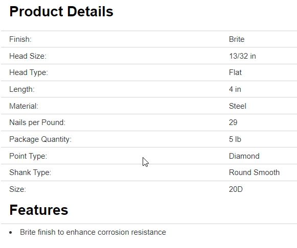 ProFit 0053205 Common Nails, 20D, 4" 5Lb