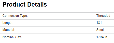 ProSource GN11/4X18-S Galv. Steel Pipe Nipple, 1-1/4"X18"