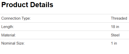 ProSource GN1X18-S Galv. Steel Pipe Nipple, 1"X18"