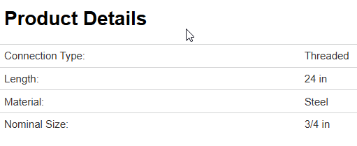 ProSource GN3/4X24-S Galv. Steel Pipe Nipple, 3/4"X24"