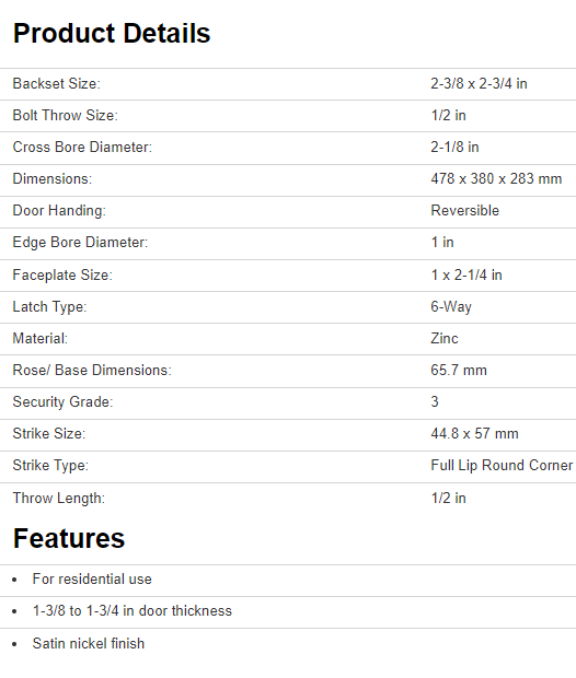 The leverset is for bedroom or bathroom doors. Both levers locked or unlocked by turn button inside or emergency key outside. It has a reversible handing. An adjustable six-way latch and radius round corner strike.