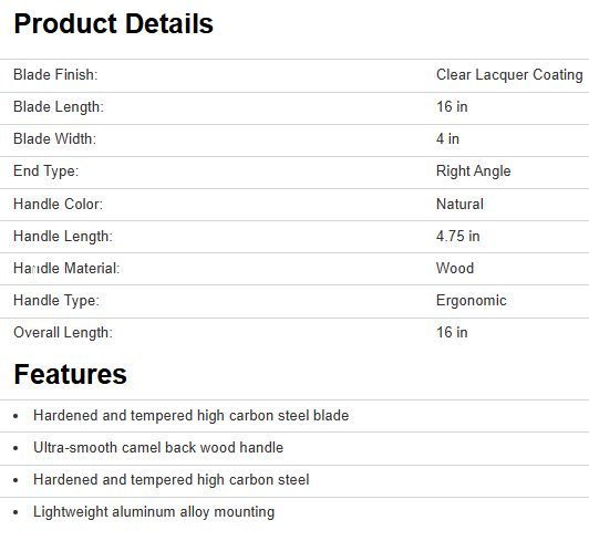 TRUELLE CIMENT ACIER 16 X 4 PO BOIS
