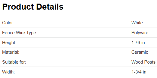 Our Zareba® large corner post ceramic insulators, pack of 10 with washers can be used with all fence wire, including high tensile, polywire, polyrope and 1/2 in polytape. They have a diameter of 1-3/4 in. These insulators are durable and dependable with great insulating performance.